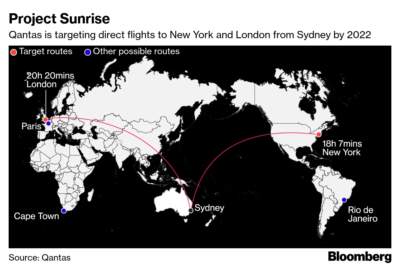 澳大利亚航空将从纽约和伦敦到悉尼进行幽灵航班,仅携带少数员工,以观察人体在商业航班开始前的承受能力。它将模拟世界上最长的直飞航班,使用波音梦想飞机,载有40名乘客和机组人员,他们将接受一系列医疗检查和评估。首席执行官艾伦·乔伊斯将这些服务描述为航空的最终边界。