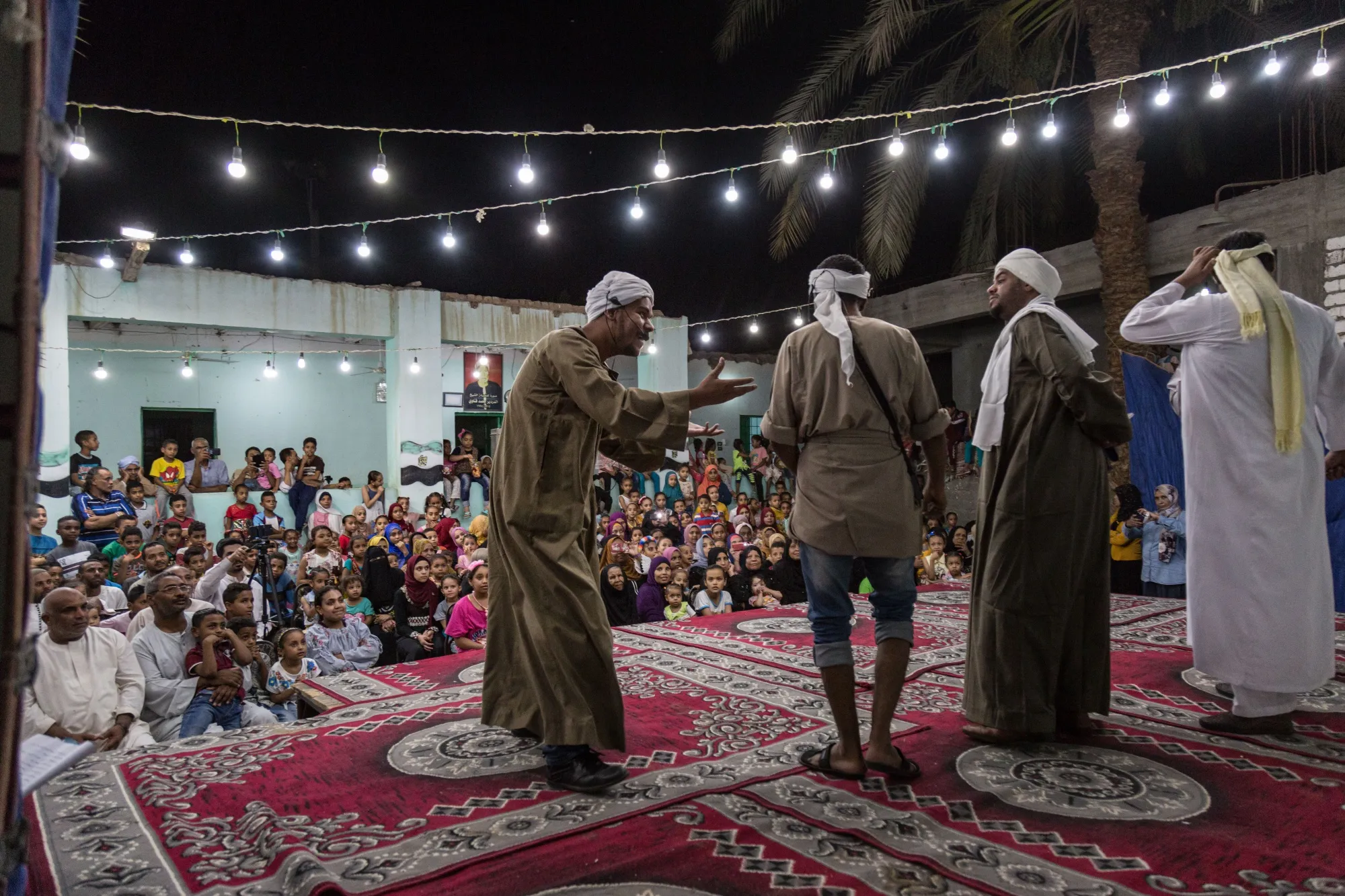 演员们在埃尔-博赫达迪村参加一场关于气候变化的戏剧。摄影师:西玛·迪亚布/西玛·迪亚布埃及正在利用社区剧院教农民如何节水和应对更高的温度。尽管这个话题关乎生死,演员们通常还是能引发一些笑声。