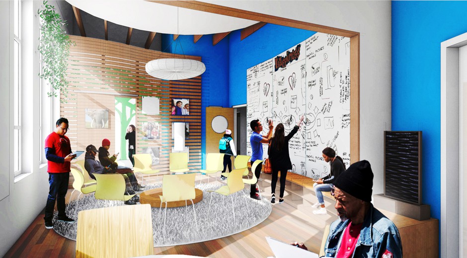 该项目部分由匿名捐赠的100万美元资助,下一城市 报道,并获得了新市场税收抵免的支持。在其之前的形态中,该建筑曾是一家夜总会和一家百货商店;最近,它充满了小商店和布满蜘蛛网的房间。当艾拉·贝克中心和ROC购买它时,他们转向了奥克兰的激进建筑师迪安娜·范·布伦,她是建筑和房地产非营利组织的联合创始人设计正义 + 设计空间。