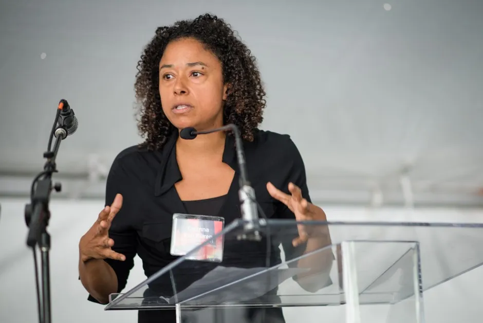 迪安娜·范·布伦在七月的恢复奥克兰软开幕式上发言。布鲁克·安德森“这个空间的一个大梦想是:如果这个社区的任何人,不是打电话给警察,而是来到这个地方,会是什么样子,”范·布伦在带领CityLab参观大楼时说。“这是一个让人们共同合作、共同交流和与非营利组织合作的机会。”