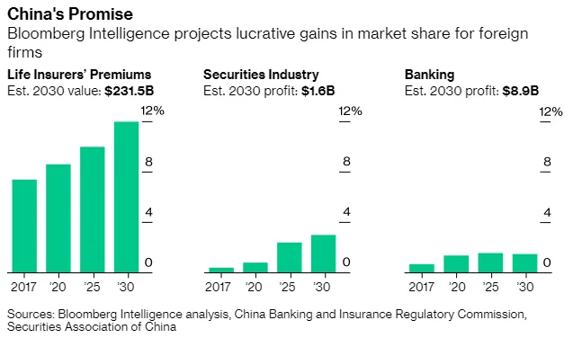 尽管贸易和香港抗议活动带来了诸多不确定性,商业仍在继续。高盛本周请求中国监管机构批准其在当地投资银行业务中获得多数股权。摩根士丹利和摩根大通也采取了类似的举措,以扩大在中国的业务。黑石集团的拉里·芬克本月早些时候在北京探讨其公司的选项。近期活动的增加是在中国领导人推动计划向外国公司开放国家的金融系统之后出现的。尽管美国的关税使一些行业退出中国,但华尔街似乎仍然看到许多机会。