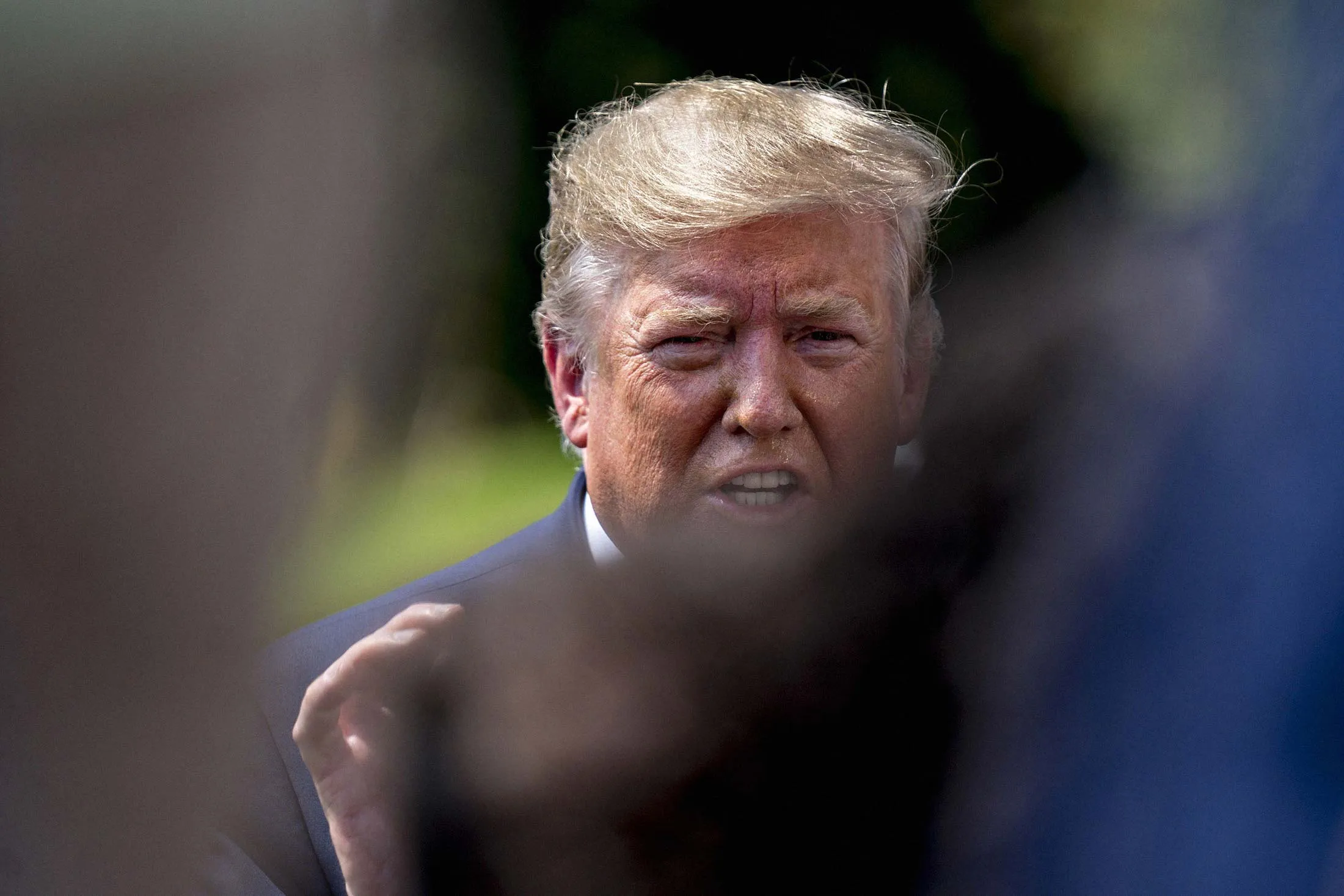 美国总统唐纳德·特朗普在南草坪上向媒体成员发表讲话。2019年8月21日,星期三。