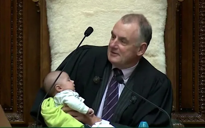 **7. 新西兰的一位政治家热烈欢迎一位新妈妈。**发言人特雷弗·马拉德在她回到工作的第一天抱着同事塔马提·科菲的婴儿。他甚至给婴儿喂奶。