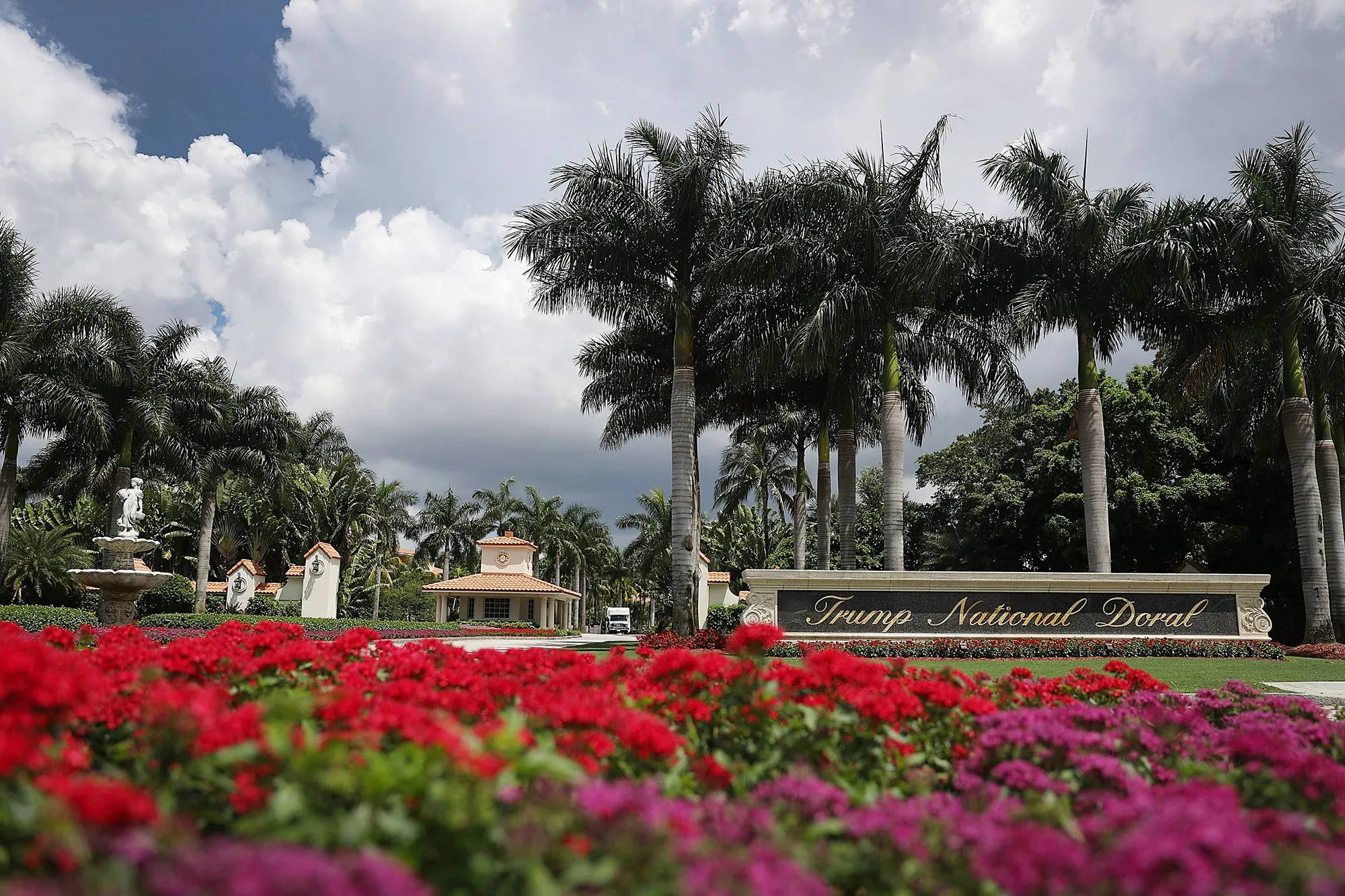 多拉,佛罗里达州 - 6月1日: 特朗普国家多拉的正门,2016年6月1日在佛罗里达州多拉,那里有一座由共和党总统候选人唐纳德·特朗普拥有的高尔夫球场。报道称,自1961年以来在特朗普国家多拉举行的PGA巡回赛活动将在2017年移至墨西哥城。(照片由乔·雷德尔/Getty Images)摄影师: 乔·雷德尔/Getty Images北美摄影师: 乔·雷德尔/Getty Images