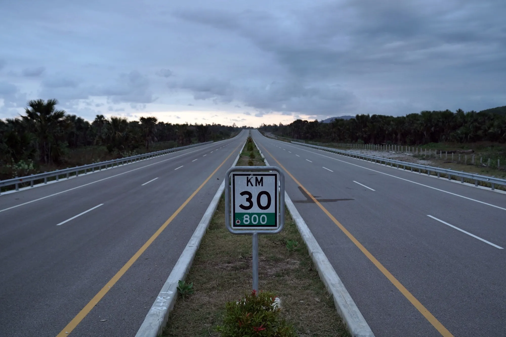 在祖马莱附近,中国建造的高速公路的一段荒废区域,与国家臭名昭著的糟糕道路网络形成鲜明对比。