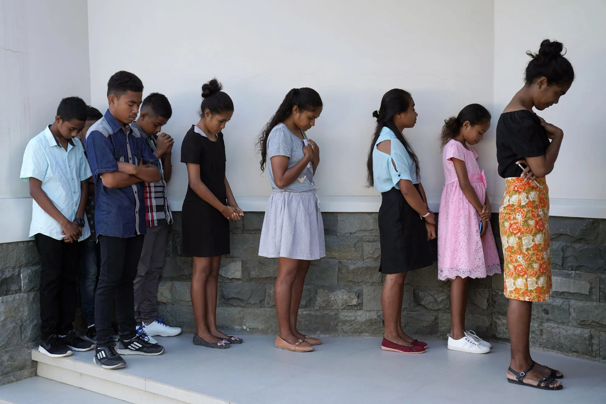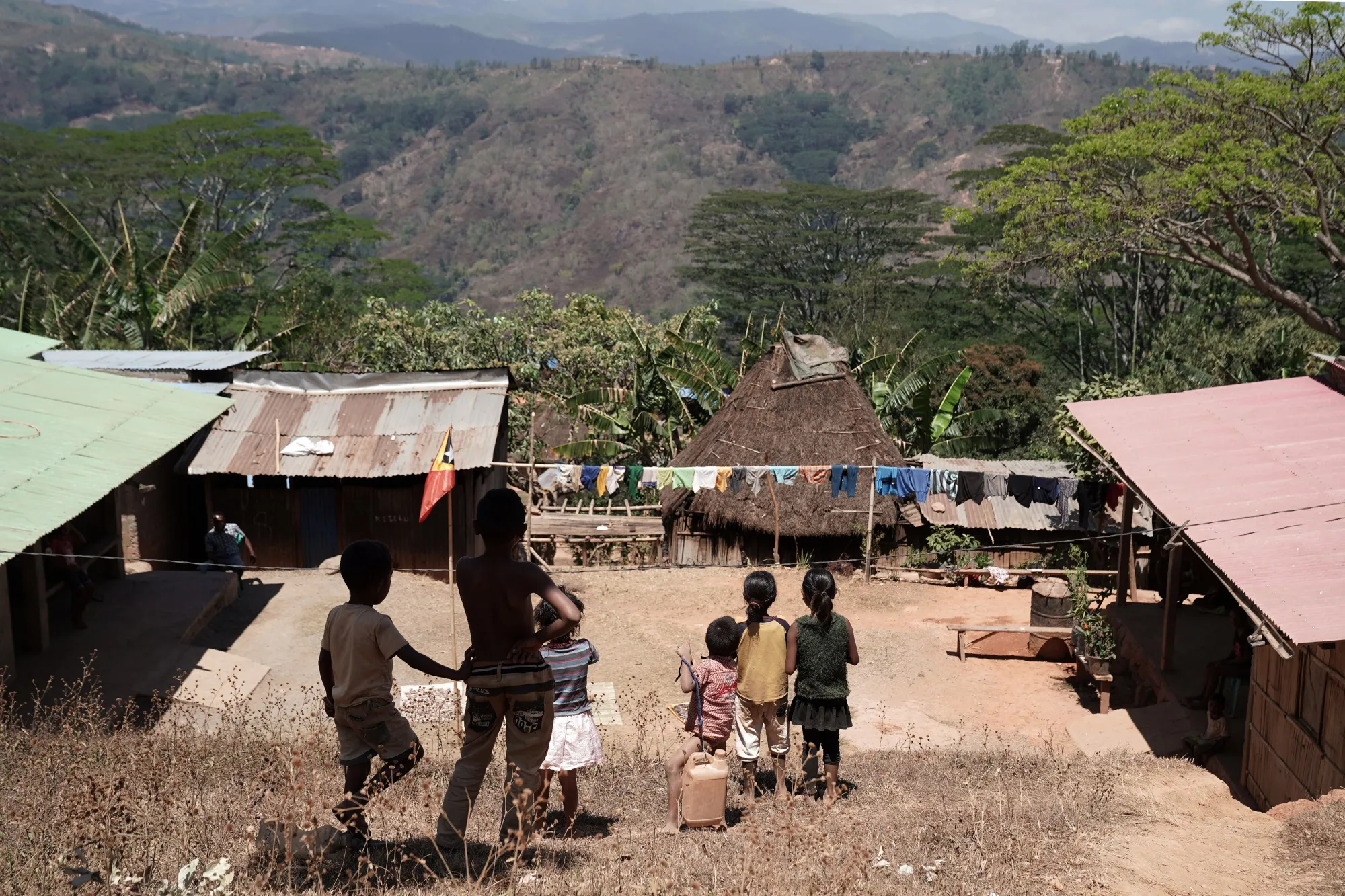 孩子们站在距离帝力约50公里(31英里)的Railaku Kraik村的山坡上,那里人口不到100人。