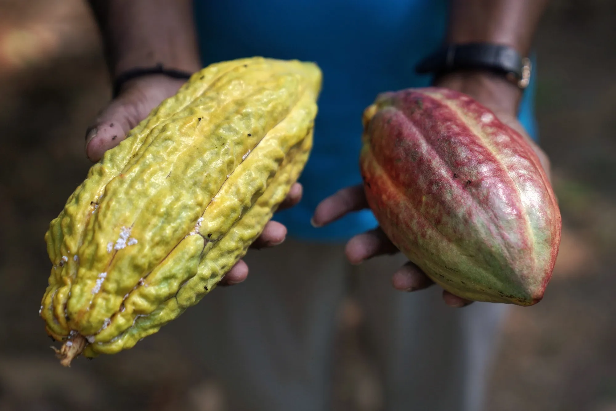 来自外籍澳大利亚人大卫·博伊斯在Railico的农场的可可果,年轻农民在这里接受培训。