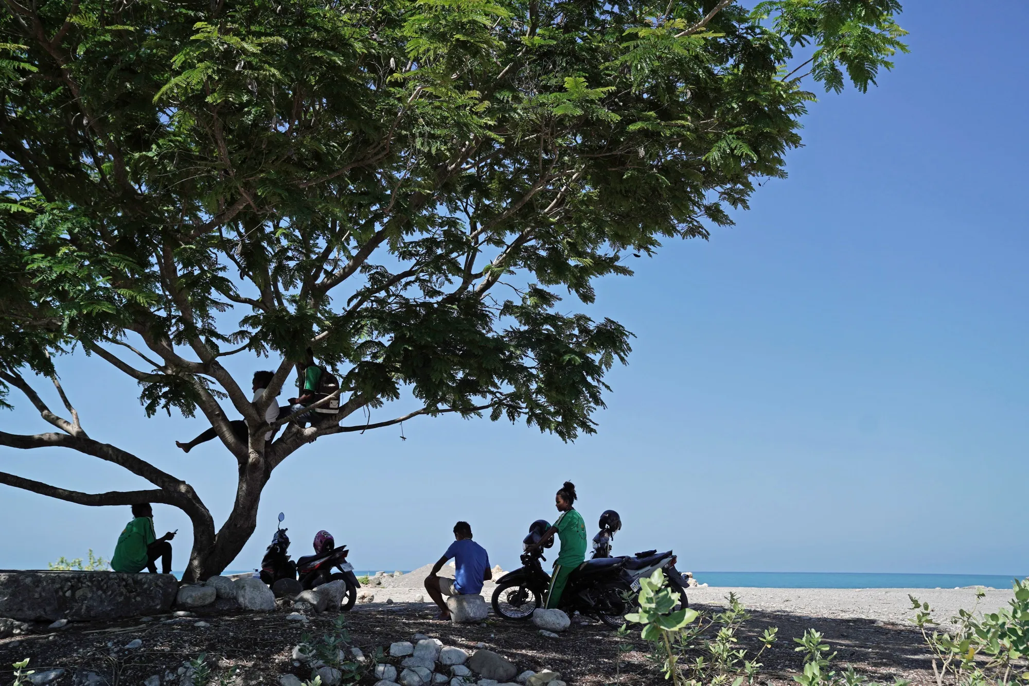 年轻人在塔西·马内项目的萨乌伊海滩聚集。