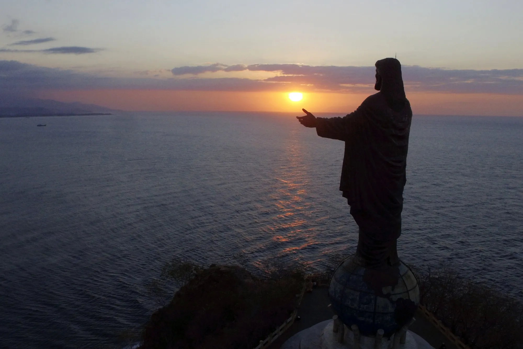 太阳在帝力附近的基督君王雕像上落下。摄影师:迪马斯·阿尔迪安/彭博社