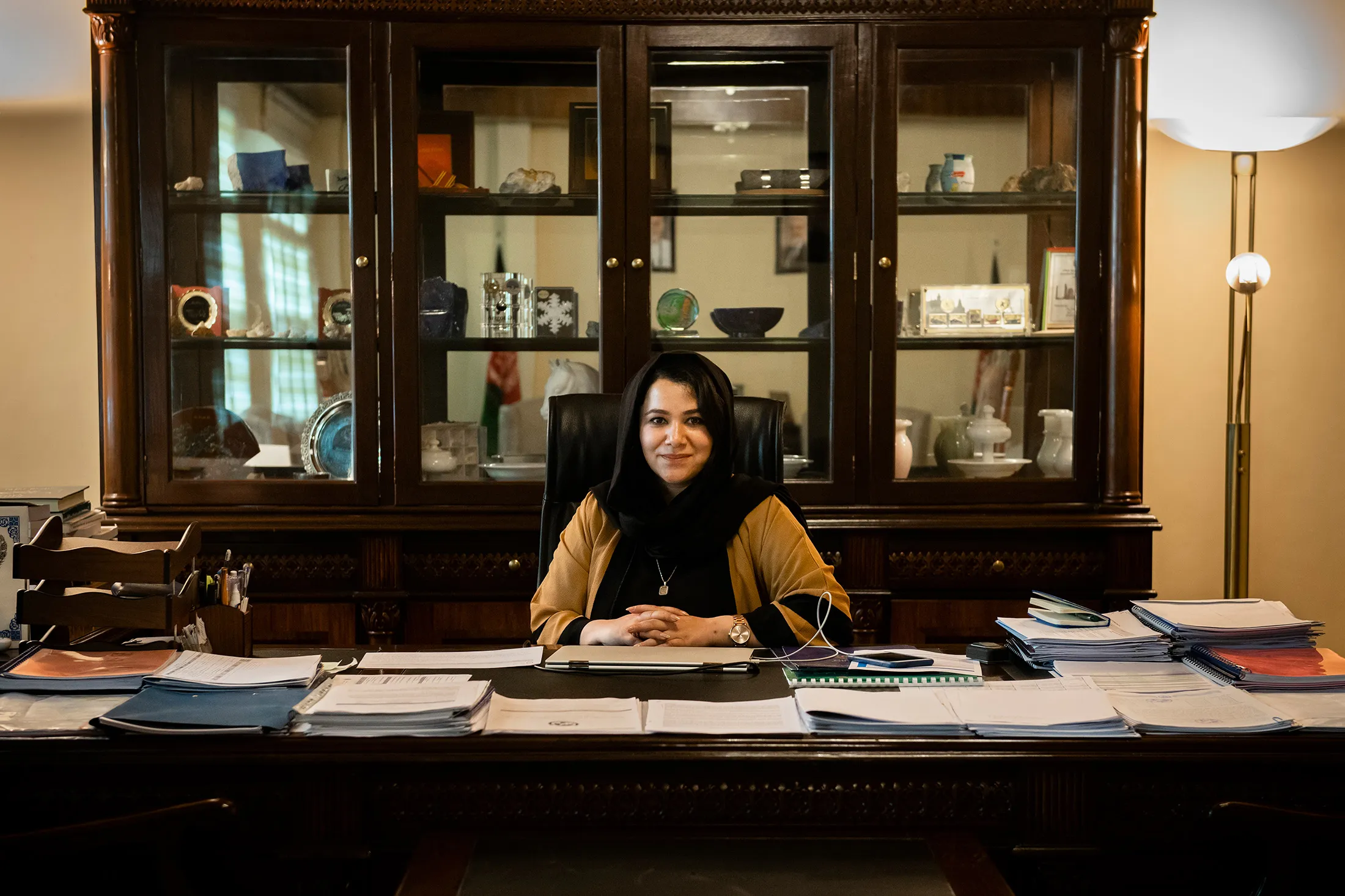 内汉在她的办公室。摄影师:基安娜·哈耶里,彭博商业周刊她通过从白沙瓦的一所大学毕业并在一家外国非政府组织找到工作来回报这种信任,成为家庭的主要经济支柱。2002年,她在美国主导的入侵后返回喀布尔。城市被摧毁,但对一个会说英语、懂电脑的阿富汗女性来说充满了机会。她帮助开设了挪威难民委员会的办公室,随后被阿富汗财政部聘用。