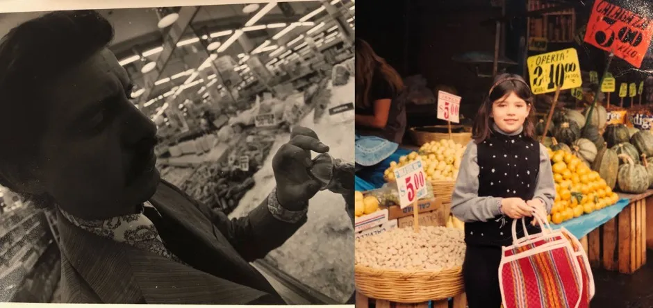 胡安娜·洛梅利的父亲,阿图罗·洛梅利·埃斯卡兰特,在市场上检查一条鱼;她的女儿,维塔·达杜·洛梅利,在2003年的哈迈卡市场。由胡安娜·洛梅利提供玛丽索尔和她的果园