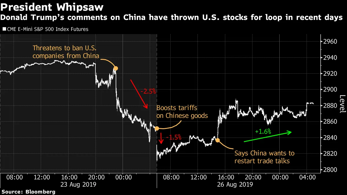 但到那天下午,情况 发生了变化。特朗普再次称习近平为伟大的领导者,并赞扬了副总理刘鹤强调冷静谈判。美国总统还表示,北京已发起了两次“非常富有成效”的电话会议,并表达了 重启谈判的愿望,这一发展被许多人解读为 缓和紧张局势。