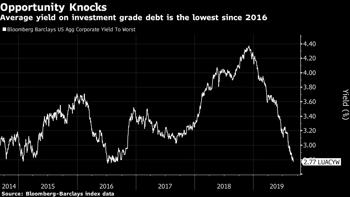 彭博社彭博社与尾部风险结果相关的概率降低被视为对美国风险资产的绝对积极因素,因为收益率与无风险利率之间的差距相当大。早在6月,这一切源于美联储主席杰罗姆·鲍威尔的保证,即中央银行将采取适当措施以维持经济扩张。现在,这一切源于对唐纳德·特朗普总统将采取适当措施以通过缓和贸易战来维持扩张的希望,以及基于当前数据的迹象表明这种下滑并不迫在眉睫。