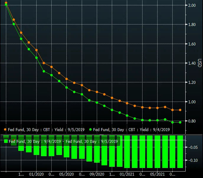 自7月31日降息以来,联邦基金期货曲线向下的缺口表明,市场继续要求在中期内超出“中期调整”的东西。但在短期内,预期与可能的结果相当一致,风险资产即使在隐含的美联储宽松减弱的情况下也能够上涨。换句话说,只要经济数据没有发出衰退的警报,投资者似乎能够逐渐摆脱中央银行的生命支持。但请注意:这个过程——就像混乱中断的债券牛市——即使最终实现,也可能不是单向的旅程。
