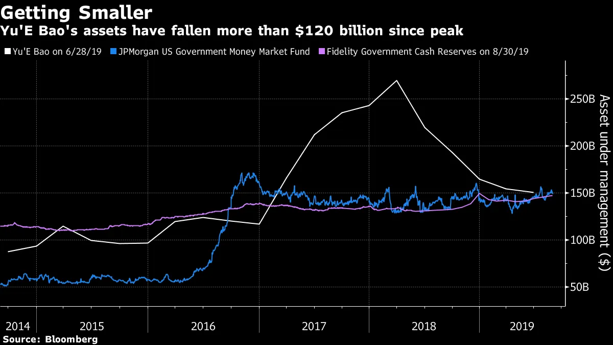 全球最大的货币市场基金在中国缩水1200亿美元。