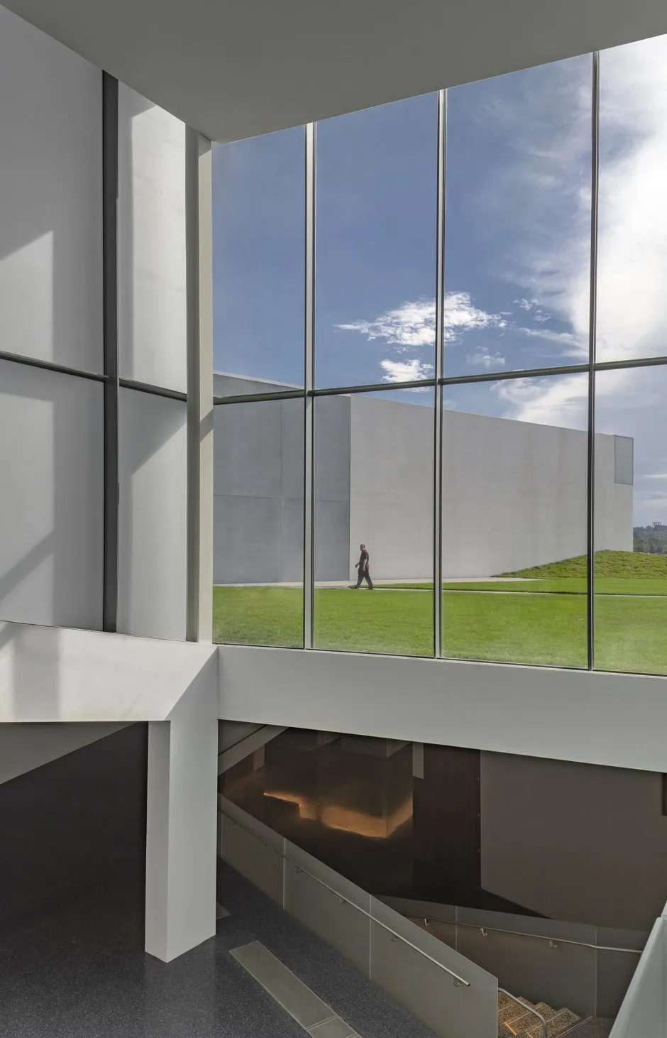 他们可能从入口馆开始,入口馆可通过停车场、街道和石头建筑进入。通过几条路线,顾客将从地下进入馆内,尽管他们可能永远不会知道这一点。所有三个馆都是一个结构的地面以上部分,该结构在地面以上和以下交织。体验从未让人感到幽闭。(霍尔喜欢在空间中玩弄方向感:在中国深圳,他设计了一个名为水平摩天大楼的项目,其长度与帝国大厦的高度相同。)