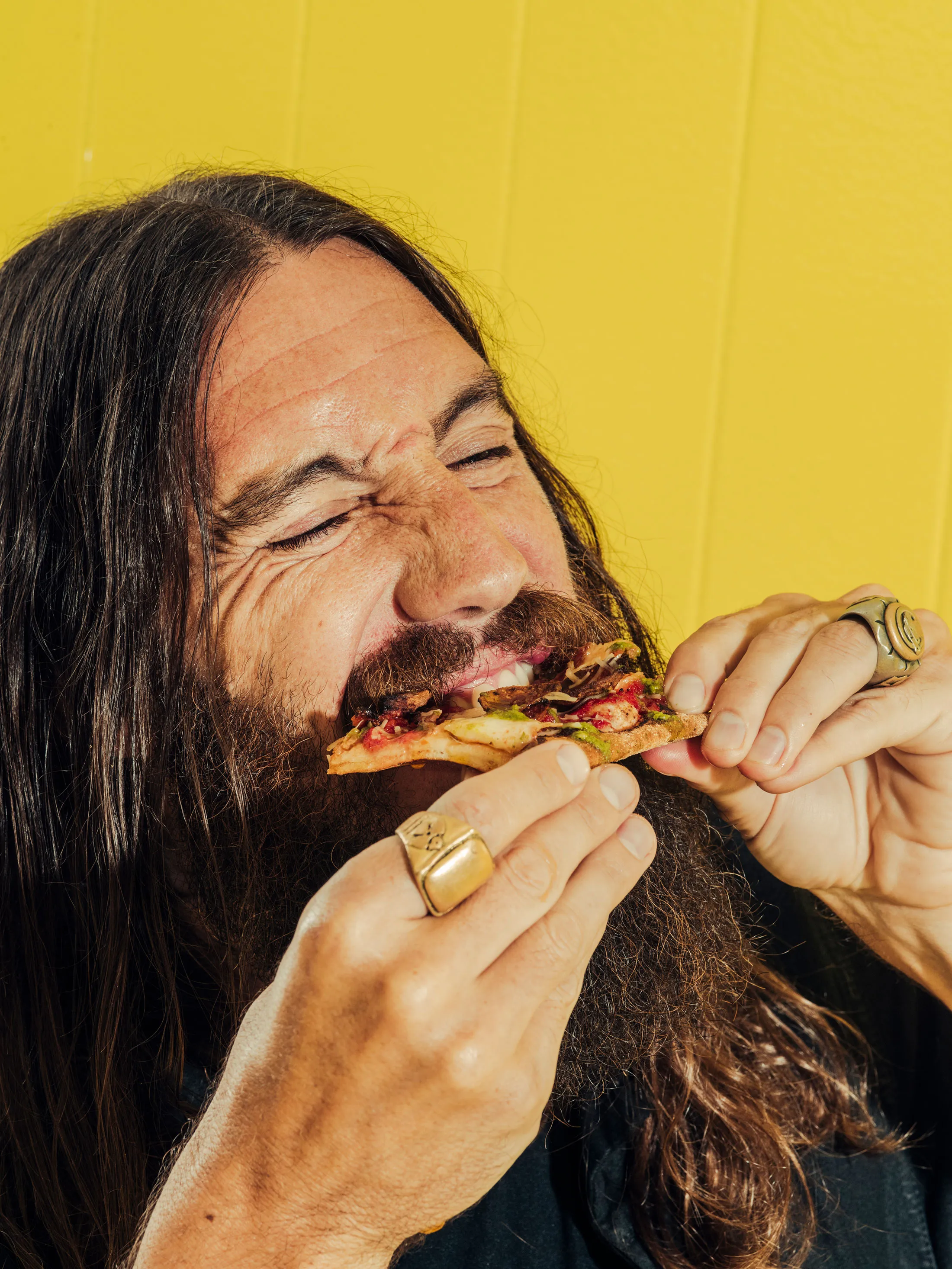 摄影师:Cole Wilson为彭博商业周刊Michael Lastoria,&Pizza的首席执行官,这是一家总部位于华盛顿特区的连锁店,在东海岸有36个分店,他身材高挑、纤细、宁静,留着全胡子,棕色的头发垂过肩膀。当我在一个温暖的春天,走进位于曼哈顿NoMad区的&Pizza店时,我见到他,他穿着一件黑色丝绸衬衫、一件黑色斗篷、剪裁合身的黑色裤子和长黑色袜子,以及一双黑色Wu Wear Wallabee靴子:如果耶稣走进一个Yohji Yamamoto的秀场,可能就是这个样子。