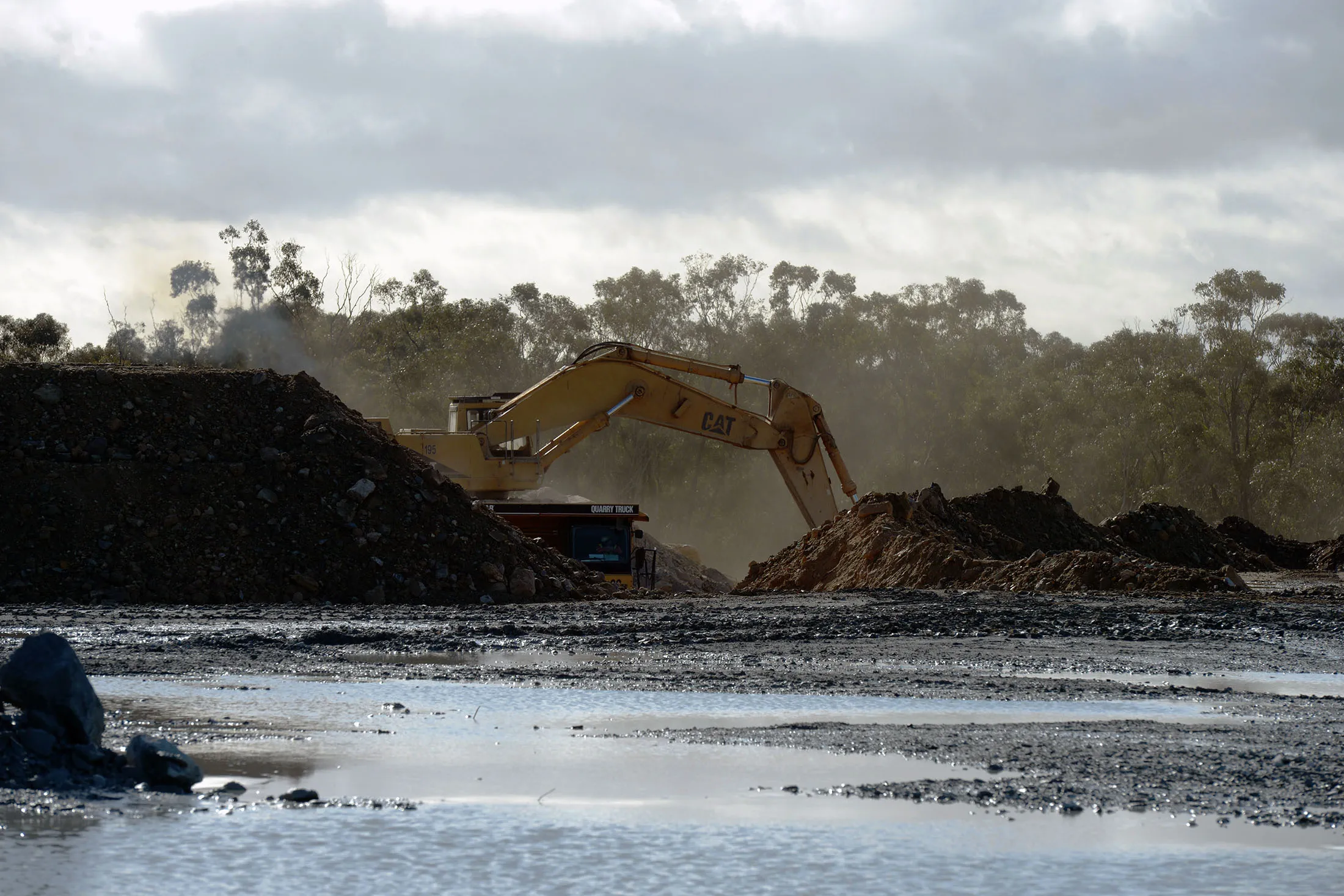 推土机在矿区垫上移动土壤。摄影师:卡拉·戈特根斯/彭博社