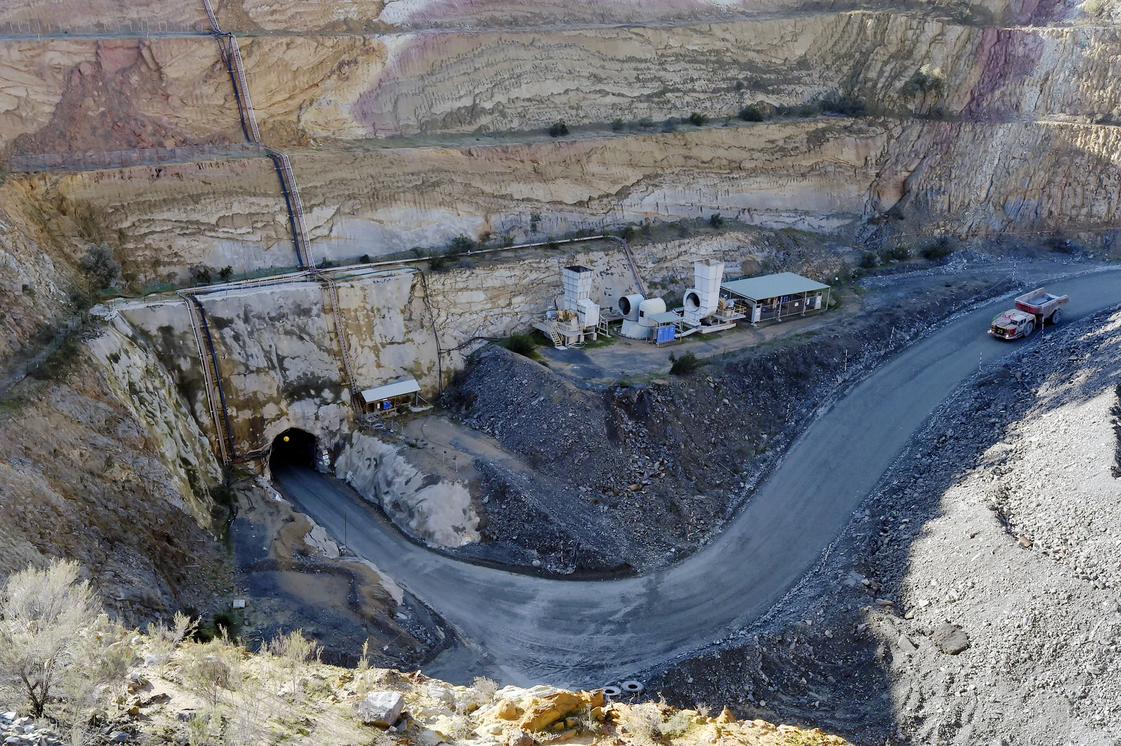 地下矿井的入口。摄影师:卡拉·戈特根斯/彭博社深入地下以开发这种不同且更集中金属来源的做法,显著改变了福斯特维尔的命运。该地点首次于1894年开采,持续约十年,随后在下一个世纪间断性开采,直到2006年开设了地下矿井。