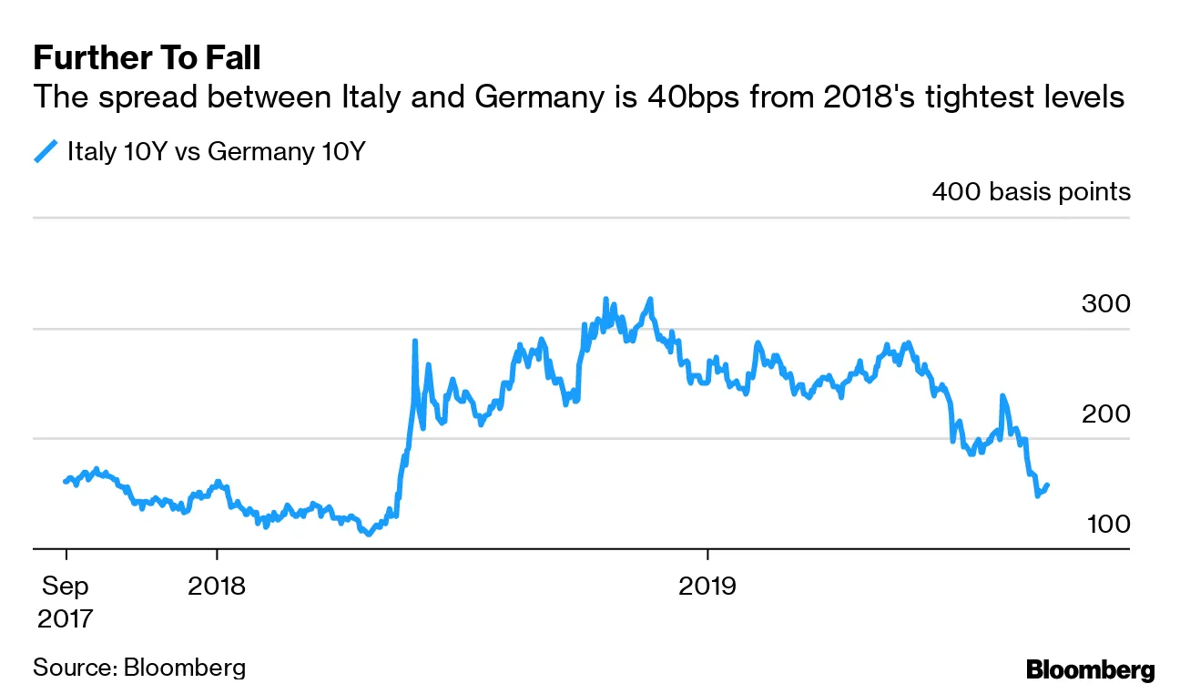 意大利的新政府有一个黄金机会,由于该国主权债券收益率的急剧下降,提前满足今年的借款需求,Marcus Ashworth为彭博社观点撰写。成功的债券销售将巩固意大利在欧元区发行者中的改善地位。同时,这将向布鲁塞尔表明,投资者支持新的联盟。