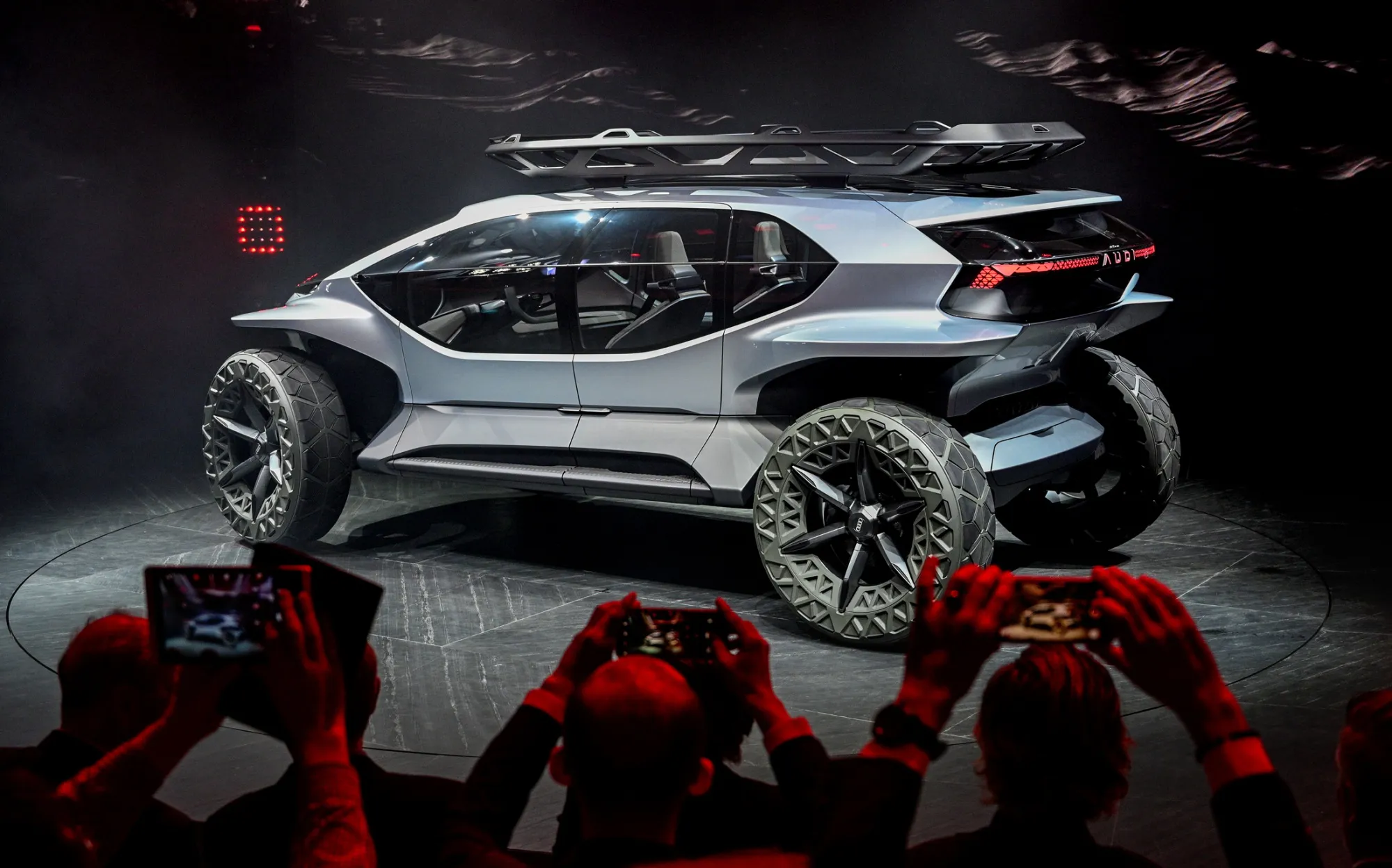 德国法兰克福 - 2019年9月10日:在2019年法兰克福车展上,奥迪AI:TRAIL在奥迪新闻发布会上亮相。(摄影:Sascha Schuermann/Getty Images)摄影师:Sascha Schuermann/Getty Images Europe奥迪AI:Trail Quattro概念车是其系列中第四款疯狂的未来主义概念车。摄影师:Sascha Schuermann/Getty Images。