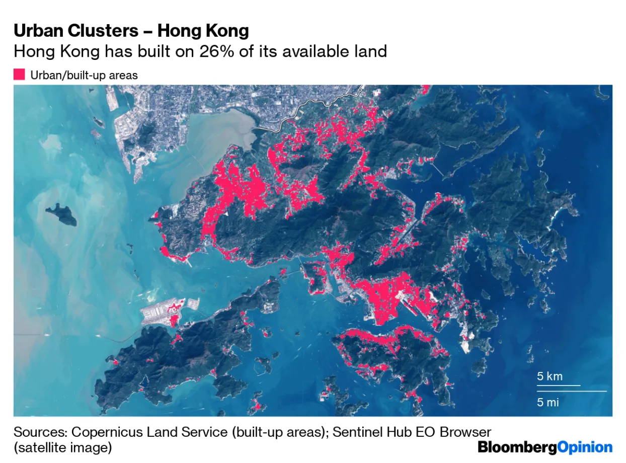这两张地图告诉我们关于香港住房政策失败的所有信息,这些失败引发了那里的大规模街头抗议,作者是Nisha Gopalan 和 David Fickling来自彭博社观点。