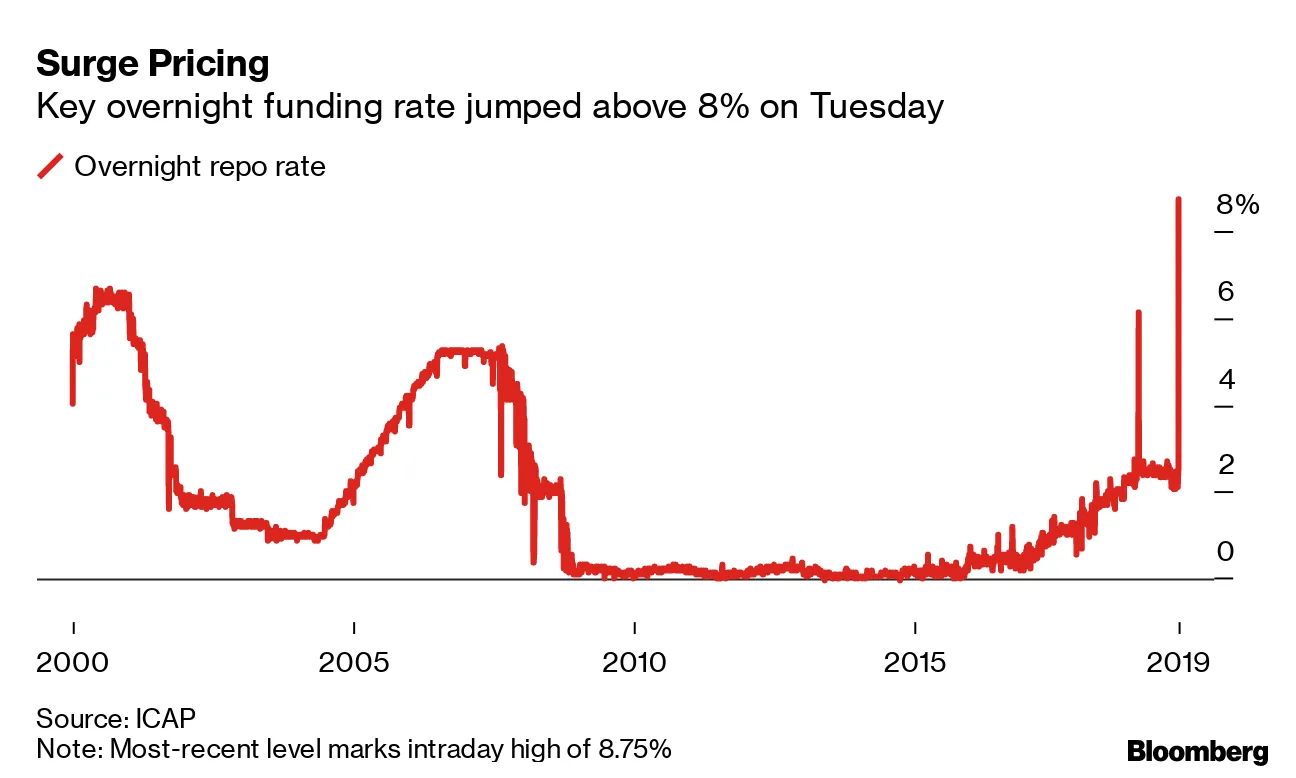 - 货币市场****在中央银行今天提供750亿美元的所谓回购操作后平静下来,但美联储必须长期解决这个问题。选项包括:调整超额准备金的利率、引入隔夜回购工具或扩大资产负债表。以下是回购融资市场如何在关键时刻“打盹”的情况。