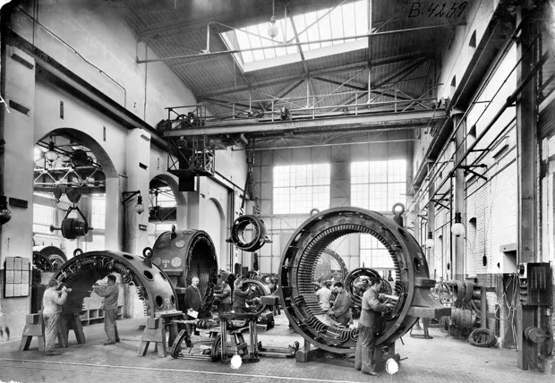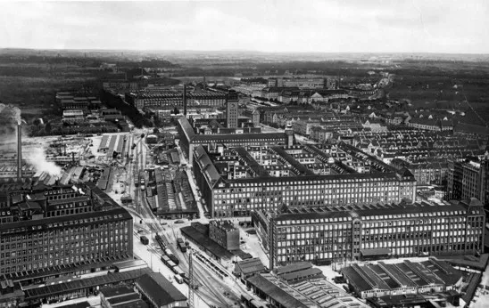 20世纪初西门子城的效果图。该公司于1897年在柏林西北部获得土地,并将大部分业务集中在那里。到1914年,随着工厂住房和社区基础设施的建立,一个新的城市区诞生了:西门子城。西门子该公司在以其命名的柏林东北郊区的历史可以追溯到120多年前。计划重建的大部分场地自1897年以来一直由西门子拥有。在20世纪上半叶,该公司为曾在这里工作的工人建造了住房和其他社区设施。通过西门子修建的4.5公里铁路与柏林其他地区相连,西门子城在第二次世界大战前达到了90,000名员工在附近工作和生活的巅峰。