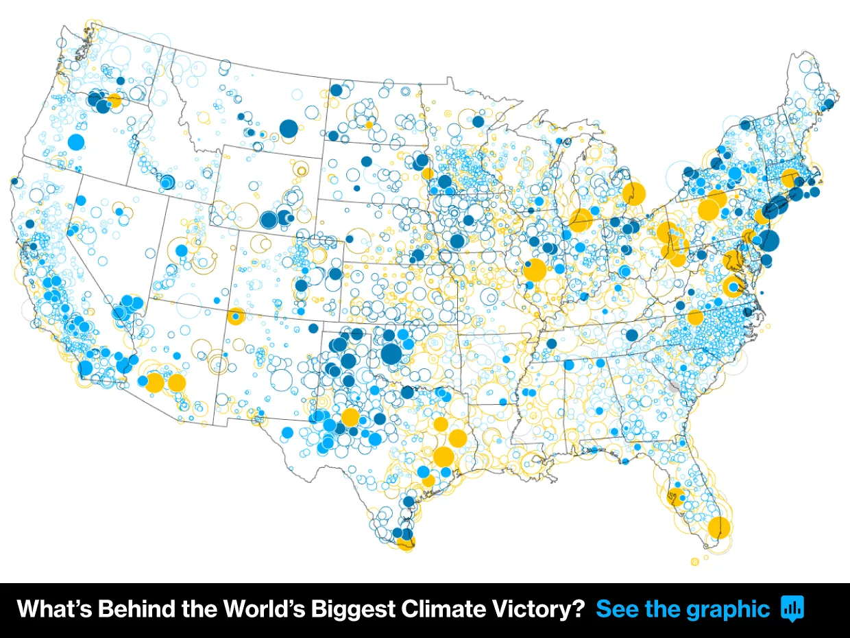 这些发展对逐步淘汰化石燃料和减缓气候变化的推动具有深远的影响。电力生产和供暖 占 全球温室气体的25%。随着风能和太阳能证明它们能够独立与煤炭和天然气发电厂竞争,支持无碳电力的经济和政治论据变得越来越难以反驳。