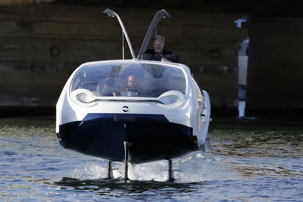 **5. 一种泡泡形状的水上出租车正在清理巴黎的通勤。**环保的SeaBubbles车辆静静地滑行在塞纳河上,不产生波浪或污染,也不增加城市的交通拥堵。
