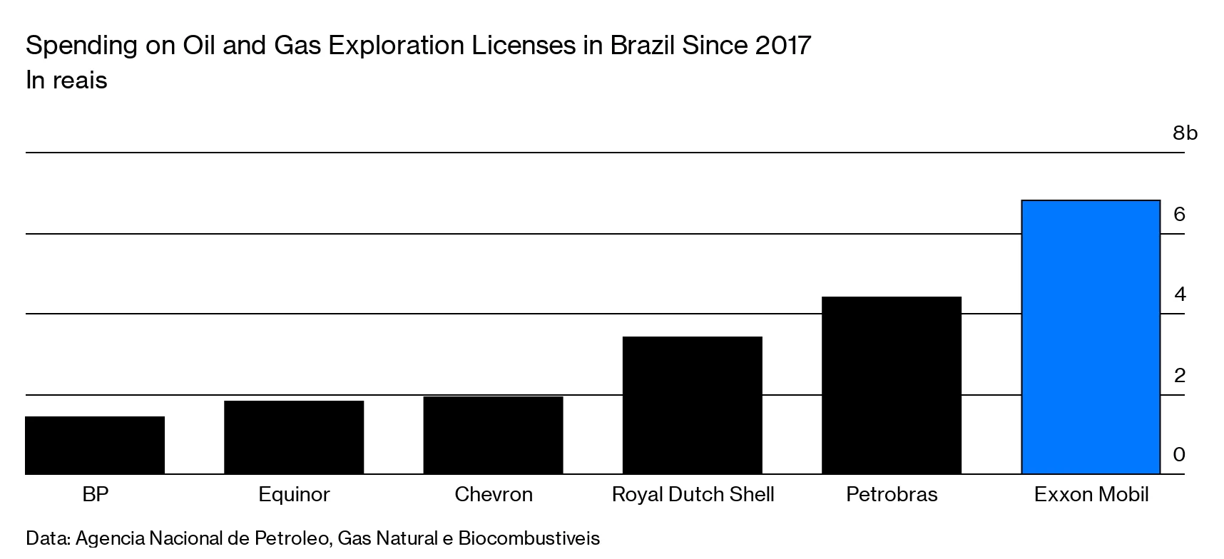 欧洲竞争对手皇家荷兰壳牌公司和Galp Energia SGPS SA早在2000年就购买了巴西的土地,并成功钻探石油——巴西已成为壳牌的主要利润来源。埃克森正在弥补失去的时间:在过去两年中,它在勘探权上花费了68亿雷亚尔(17亿美元),成为仅次于巴西国家石油公司的最大租赁持有者。