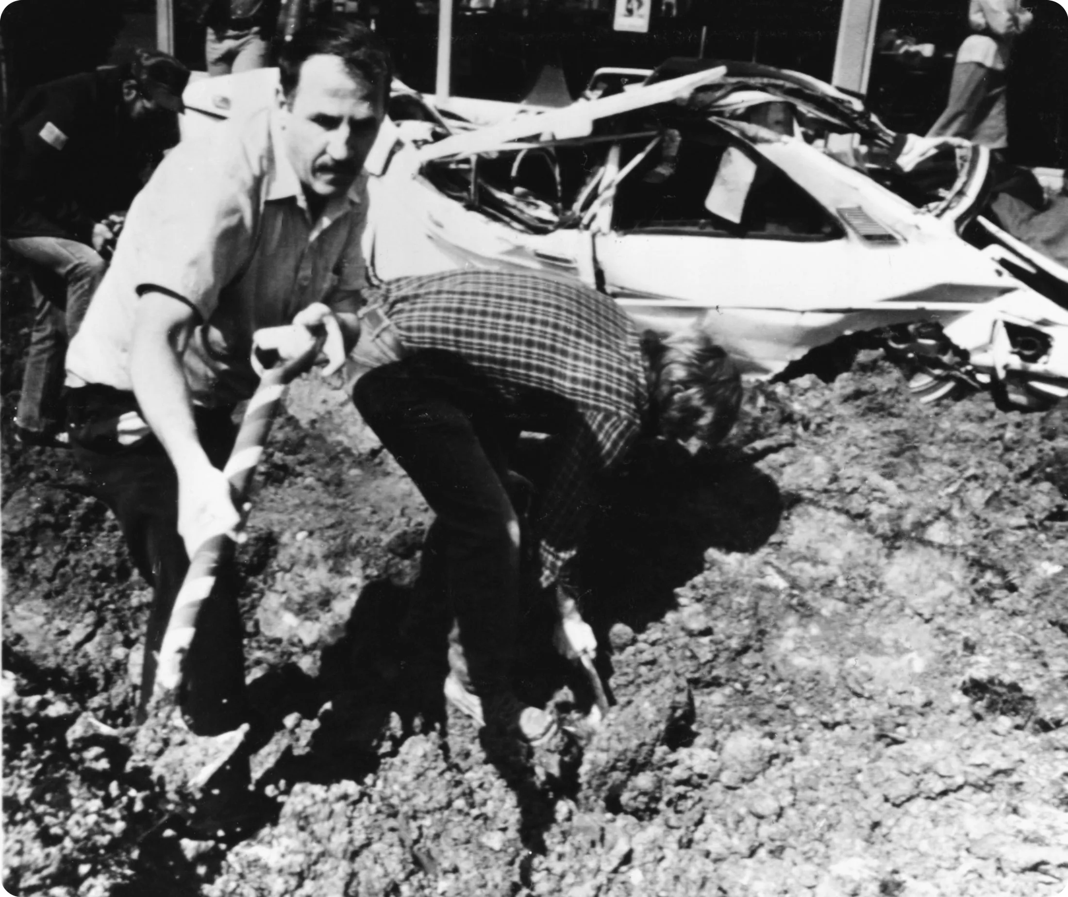 1982年3月12日,俄亥俄州哥伦布市的美国汽车工人地方成员在哥伦布汽车经销商处的示威活动中为一辆日本车挖掘坟墓。这辆车被埋葬作为工会成员对进口汽车数量愤怒的象征。摄影师:美联社照片**1982年:**本田汽车公司在美国开设第一家日本拥有的汽车工厂,生产雅阁汽车。UAW与管理层达成协议,公司将在俄亥俄州玛丽斯维尔工厂的可能工会投票中保持中立。