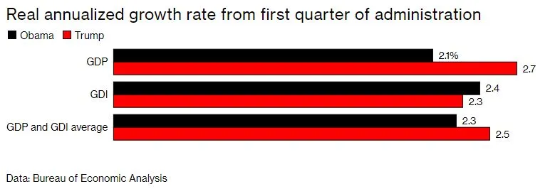 经济一直是特朗普最大的亮点之一。然而,根据一种衡量标准,国内总收入的增长在特朗普执政期间已经比奥巴马担任总统的八年期间要慢。这一数据是同一季度国家经济核算的一部分,虽然它与GDP相关,但会晚一个月发布。理论上,这两个数字应该是相同的,请阅读这里,了解它们为何总是因为现实数据的变幻而不完全相同。