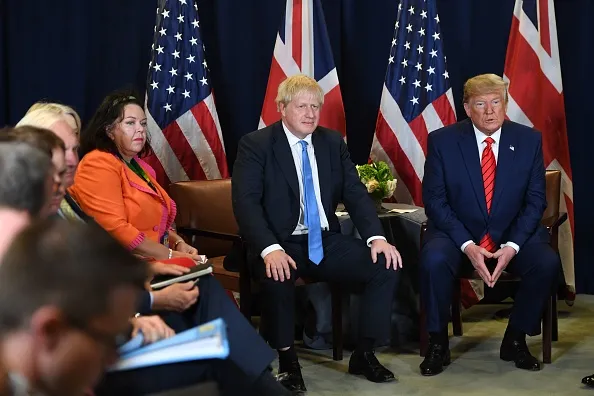 美国总统唐纳德·特朗普与英国首相鲍里斯·约翰逊于2019年9月24日在纽约联合国总部举行会议,会议是在联合国大会期间进行的。(照片由SAUL LOEB / AFP提供)(照片来源应为SAUL LOEB/AFP/Getty Images)摄影师:SAUL LOEB/AFP 摄影师:Saul Loeb/AFP via Getty Images