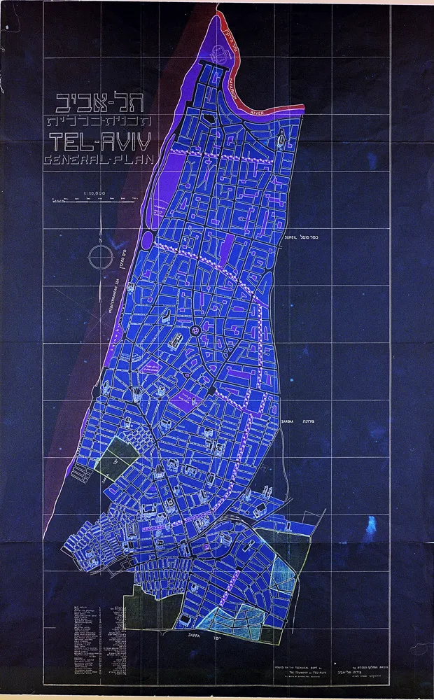 直到1920年代,特拉维夫的社区才首次被绘制在地图上。查看1930年代的特拉维夫地图,我们可以看到“环形大道”,它从海开始并结束,结合了罗斯柴尔德大道、亨大道和本·古里安大道。它曾经是,也是现在,城市中最显著的城市特征。如今,它是中央城市的主要休闲轴线,也是来自整个大都市区的许多游客的目的地,他们来寻找其主要焦点:市政厅、剧院、博物馆、主要广场和商业干道。