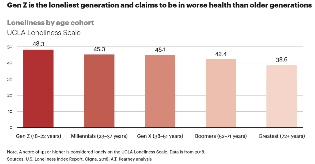 越来越多的人正在遭受孤独及其伴随的抑郁、焦虑、肥胖和自杀等问题。这促使政府和公司考虑采取行动,管理咨询公司A.T. Kearney将“孤独流行病”列为未来五年内五大重要全球趋势之一。