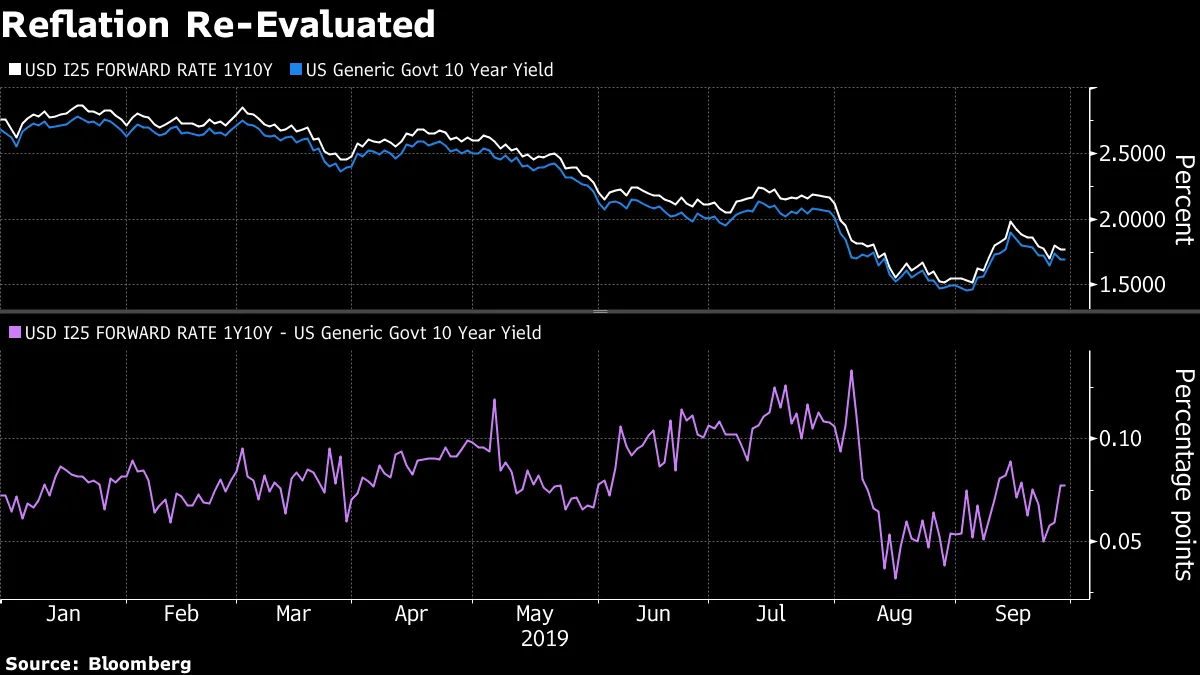 为什么将8月作为分界线?因为那时10年期收益率在美联储开始宽松周期后跌破了2%。同时,投资者开始真正放弃对未来一年内再通胀的前景,依据是10年期收益率与10年期、1年期远期利率之间的差距在缩小。