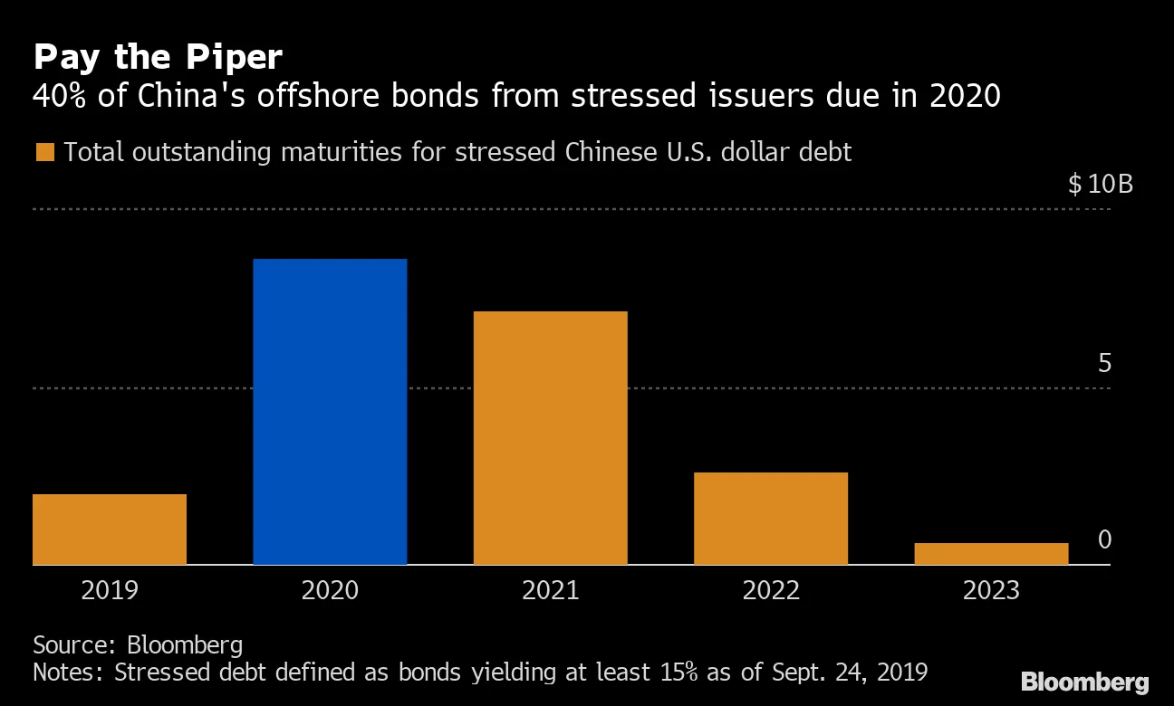 更广泛地说, 几乎40%的中国离岸压力债务将在明年到期,这表明如果去杠杆化运动仍然是优先事项,违约风险可能会显著增加。