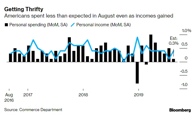 美国经济在8月份降温,因为美国人的消费低于预期,而公司削减了资本设备订单,低于预期的价格和温和的消费者信心增加了可能支持进一步美联储宽松的担忧。商品和服务的支出比7月份增长了0.1%,是六个月以来的最小增幅。