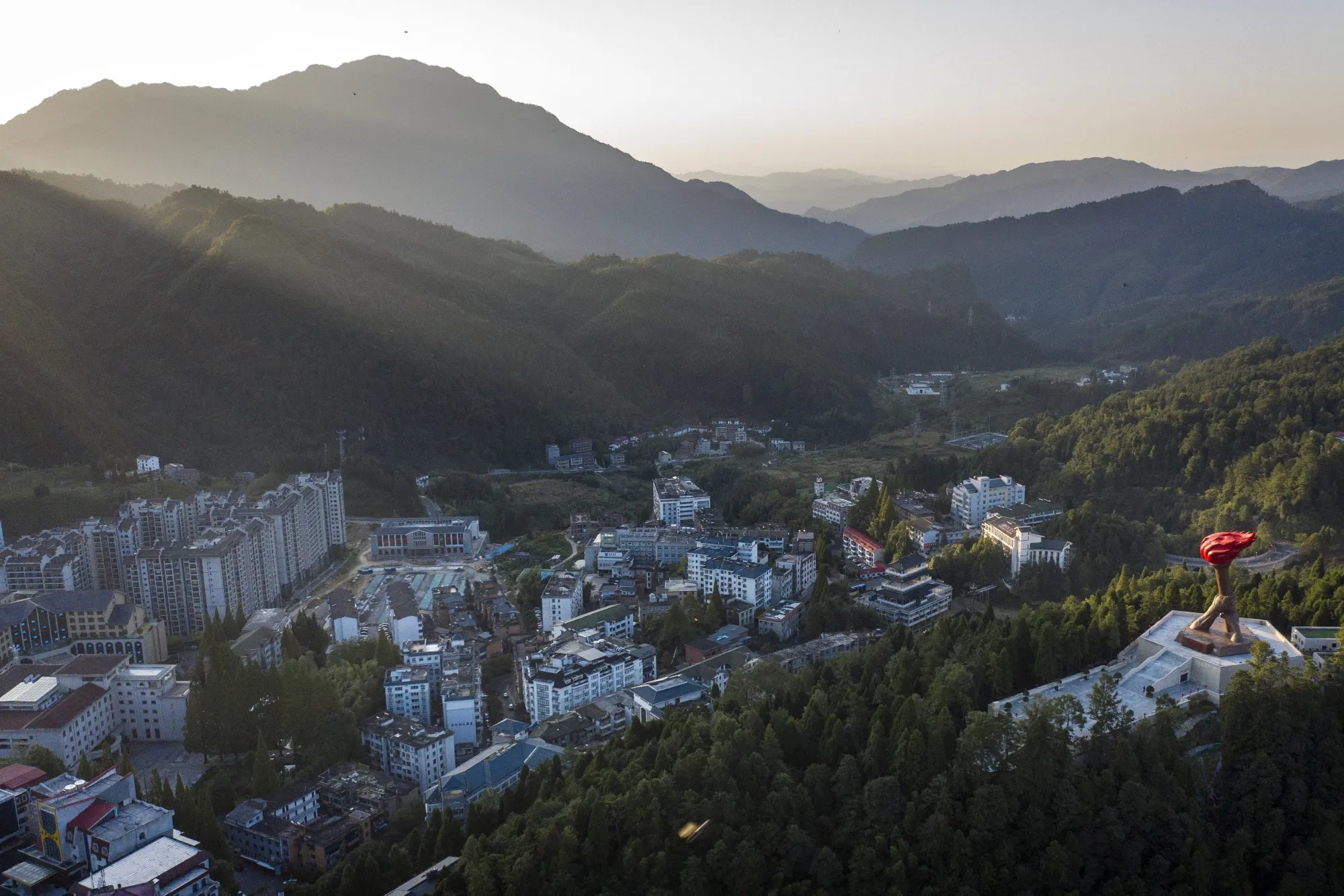 在镇上的服装店、古董店和政府经营的旅游景点,传统的毛泽东纪念品、镰刀锤子图像和工人雕像随处可见。但对习的致敬尤为突出。习的形象出现在从盘子到海报和书籍的所有物品上。