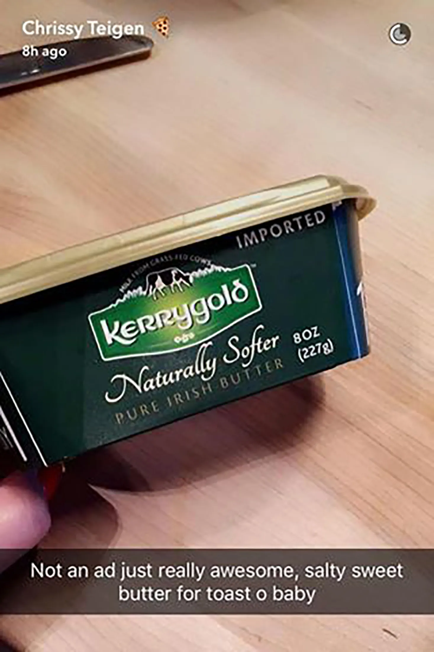 克里西·泰根是凯瑞戈德黄油的粉丝。克里西·泰根是凯瑞戈德黄油的粉丝。来源:Snapchat