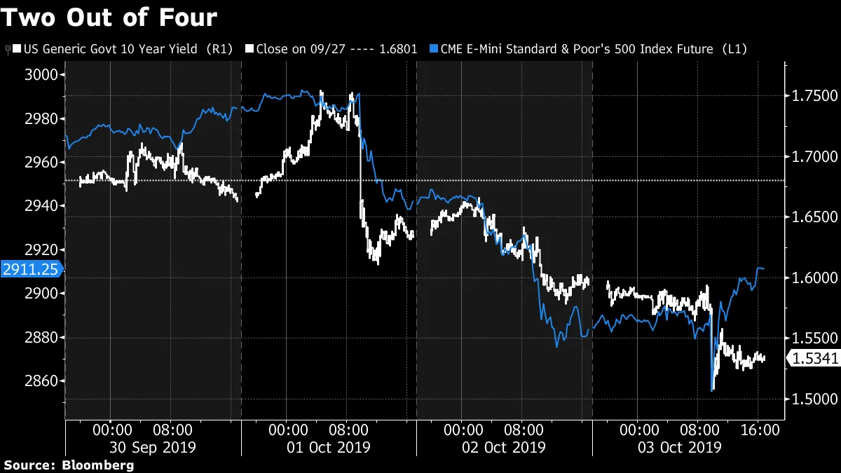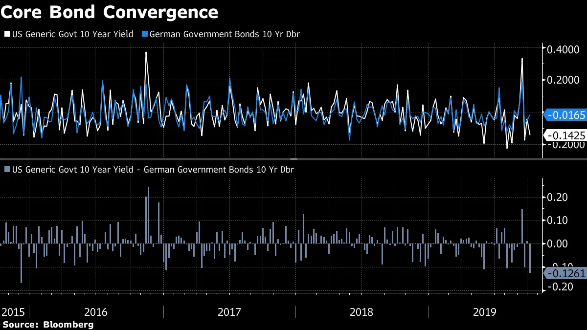 截至10月2日的五个交易日是过去十年中德国和美国10年期债务最负相关的时期。