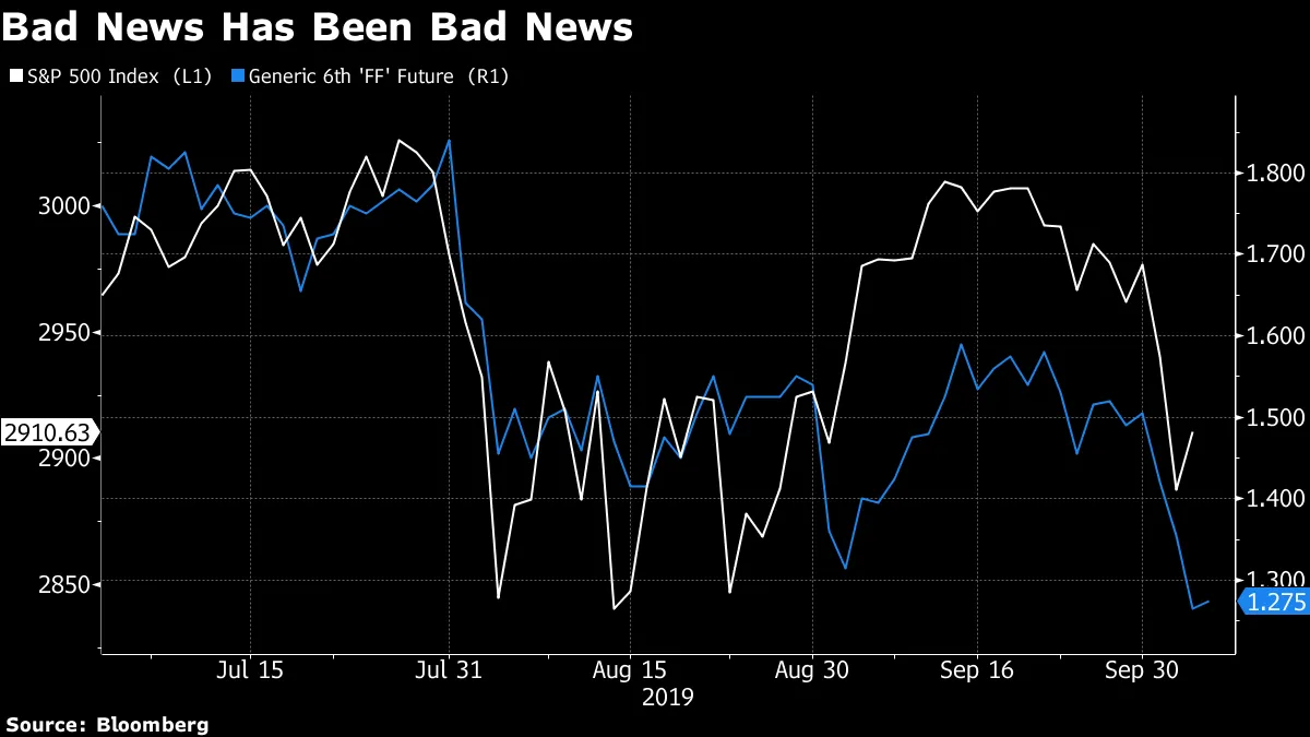 这就是为什么任何关于周四市场反弹是基于美联储支持市场的叙述并没有真正反映出根深蒂固的趋势。自从美联储开始降息以来,未来六个月内进一步宽松的可能性通常与股市下跌相关联。值得一提的是,第六个联邦基金期货合约收益率在美国数据令人失望的情况下突破了9月4日的中间低点。