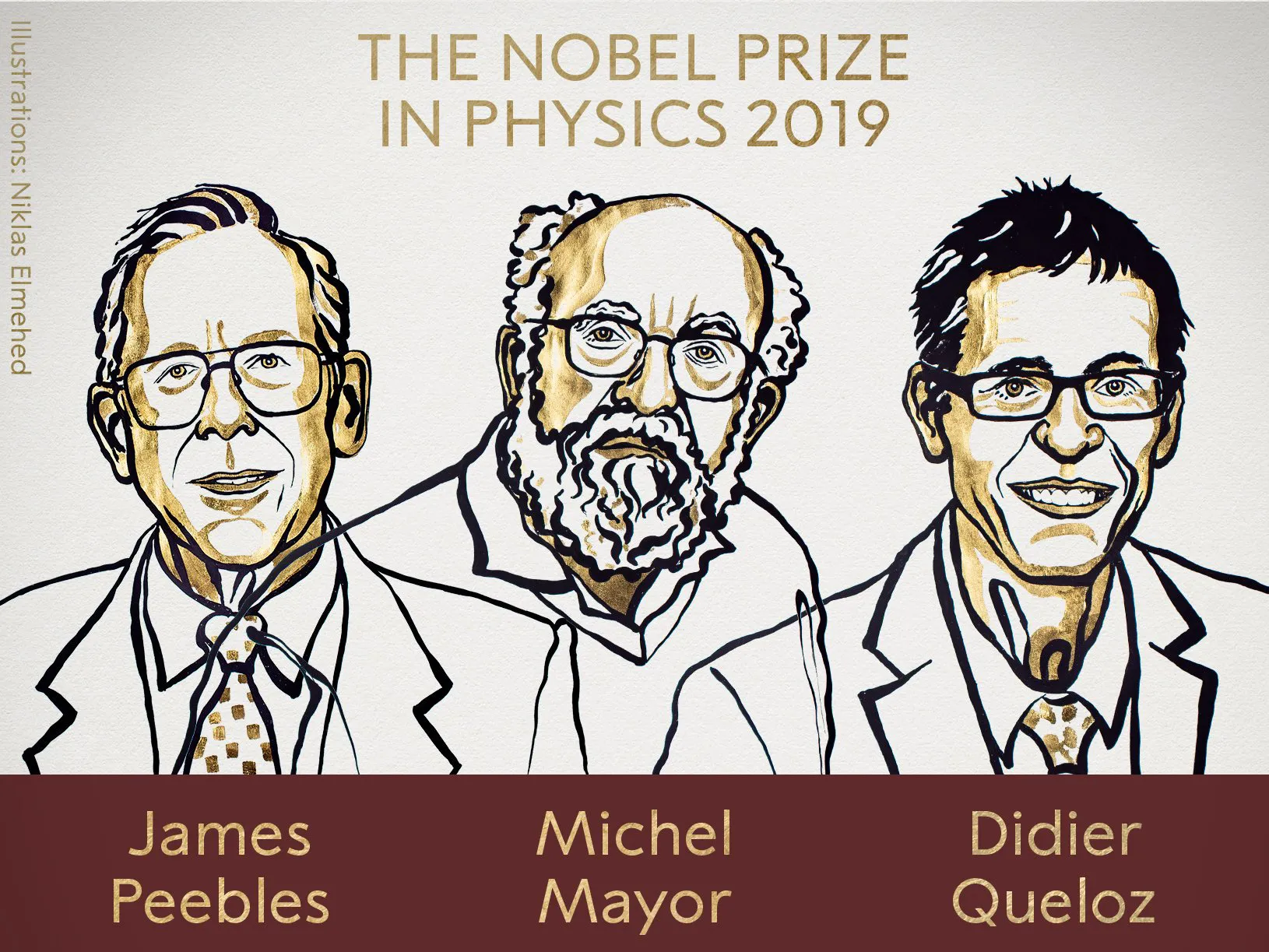 大事。 物理学诺贝尔奖授予詹姆斯·皮布尔斯、米歇尔·梅约和迪迪埃·奎洛兹,以表彰他们对 宇宙演化 和地球在宇宙中的位置理解的贡献。皮布尔斯因在物理宇宙学方面的理论发现获得了一半的奖项,另一半则共同授予梅约和奎洛兹,以表彰他们发现了一颗围绕类太阳恒星运行的系外行星。
