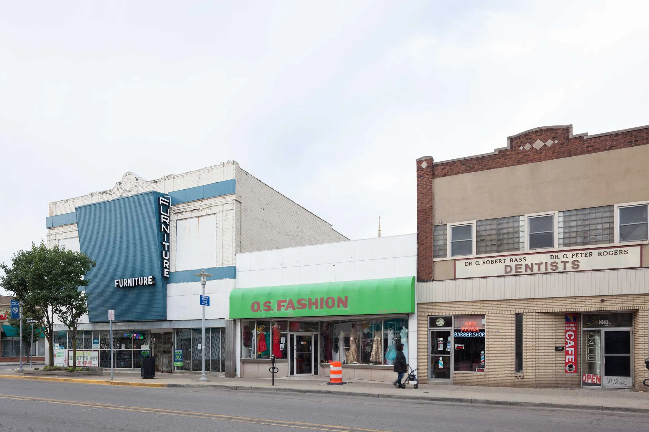 密歇根州汉姆特拉克市中心摄影师:科琳·维尔梅伦,彭博商业周刊汉姆特拉克市的面积为2.1平方英里,人口约为22,000,是密歇根州最密集和种族多样性最强的社区之一,孟加拉国人、伊拉克人、墨西哥人、乌克兰人和也门人与曾经主导人口的波兰人和非裔美国人共同生活。市中心周围是一片世纪古老的砖石和木板房屋交错的街道,市中心的核心大约有半英里长,沿着约瑟夫·坎波街延伸。在一些典当行和空置商店之间,有卖清真肉、波兰香肠和孟加拉香料的杂货店。圣弗洛里安罗马天主教堂的尖塔高耸于其他教堂、一个禅宗佛教中心、清真寺和汉姆特拉克伊斯兰中心环绕的区域之上。20世纪中期的零售招牌与阿拉伯标志和像高潜酒吧外面血红色鲨鱼头这样的时尚吸引物混合在一起。