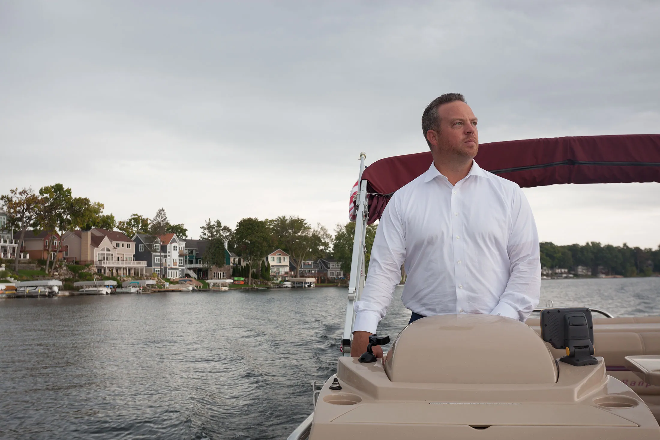 奥赖恩湖上的房屋摄影师:Corine Vermeulen为《彭博商业周刊》拍摄数十个湖泊、两个乡村俱乐部和郁郁葱葱的公园吸引了来自密歇根州东南部各地的周末游客。这里有海滩、徒步小径、露营地,还有一个“狗公园”,狗狗可以从码头跳入池塘,还有一个为残疾运动员设计的新“全包式”棒球场。北面是奥赖恩湖,一个506英亩的岛屿和半岛,周围环绕着可以卖到七位数价格的房屋,还有湖奥赖恩村,一个古雅的红砖街道、餐馆、画廊和公寓的聚集地。