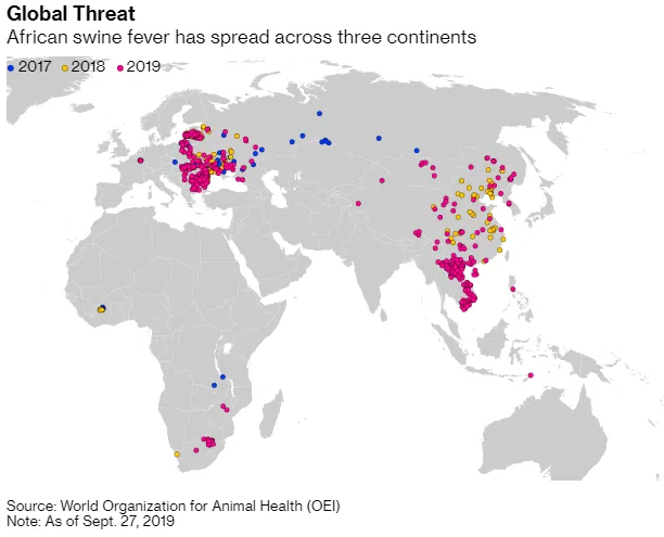 贸易战和经济增长放缓正在抑制中国消费,猪肉价格也是如此。今年,中国的主食肉类价格飙升,因为数百万头猪要么因非洲猪瘟而被杀死,要么被宰杀以防止疾病传播。即使现在,确切的死亡猪只数量也很难得出。后果更加明显。除了价格上涨,中国供应的短缺也开始影响其他国家。例如,Smithfield Foods表示,美国明年可能会看到培根和火腿的供应紧张。价格上涨还导致一些中国农民饲养非常大的猪,有些重达北极熊。
