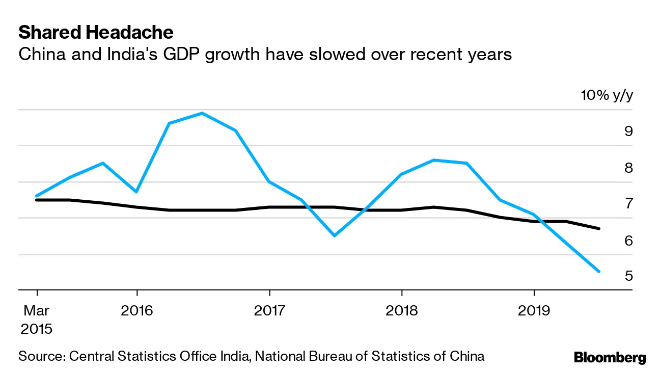 在中国谈判代表在华盛顿期间,习近平主席正在印度与总理纳伦德拉·莫迪于周五和周六在钦奈市会面。这将是世界上人口最多的国家领导人连续第二年举行面对面峰会,2018年在中国城市武汉举行过一次。他们有很多话要讨论。还有巴基斯坦和克什米尔问题。两国都在与美国谈论贸易。 经济增长放缓、脆弱的金融体系和普遍的污染是他们共同面临的一些其他难题。如果美中关系是世界上最重要的双边关系,那么北京-新德里关系正在迅速上升。