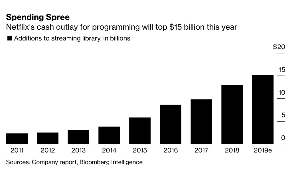 Netflix客户基础的稳定增长让投资者相信,如果公司借入数十亿美元来资助新的电视节目和电影也是可以的。公司长期以来表示,收入最终会超过其节目支出。随着公司在内部制作更多内容并减少对外部制片厂的依赖,它可以限制节目成本。