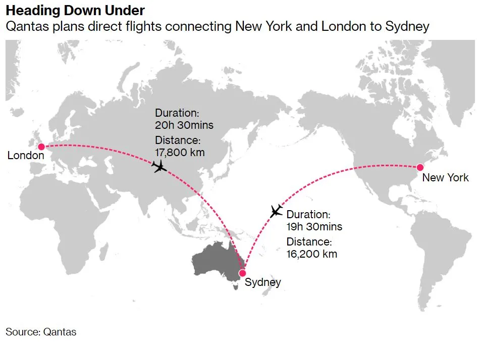 人类实验者已准备就绪。 澳洲航空将在本周末测试从纽约到悉尼的直飞航班。该航班将近20小时,是 世界上最长的航班,将于周五离开美国,周日早晨抵达澳大利亚。航空公司将对飞行员的大脑进行警觉性筛查,同时监测几十名乘客的饮食、睡眠和活动,以观察他们如何应对这一考验。